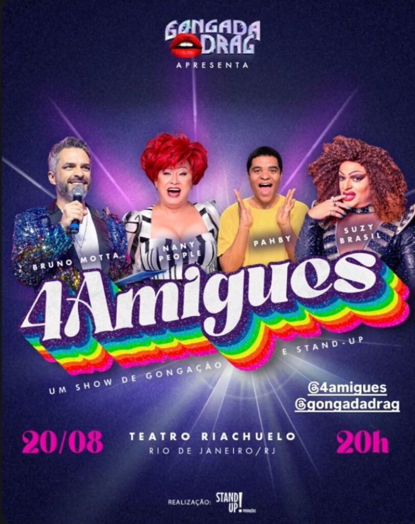 Com a mesma ousadia que transformou Gongada Drag em um sucesso absoluto de bilheteria, “4 Amigues” chega para reafirmar que rir é também um ato de resistência e união. É o tipo de evento que não se limita a entreter: ele conecta pessoas, rompe barreiras e mostra que a comédia, quando abraça todas as vozes, se torna ainda mais poderosa.